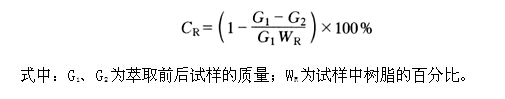 固化度是檢驗熱固性樹脂基復合材料的固化質量和制品性能的重要指標。將試樣粉未包在濾紙中置于索氏萃取器用沸騰溶劑反復萃取,使樹脂中可溶部分萃取出來,不溶部分的樹脂則認為已完全固化交聯,不溶部分占樹脂總量的百分比定義為固化度。按下式計算固化度CR: