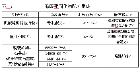(1)、材料配方氰酸酯混合膠體占材料重量26~34%。